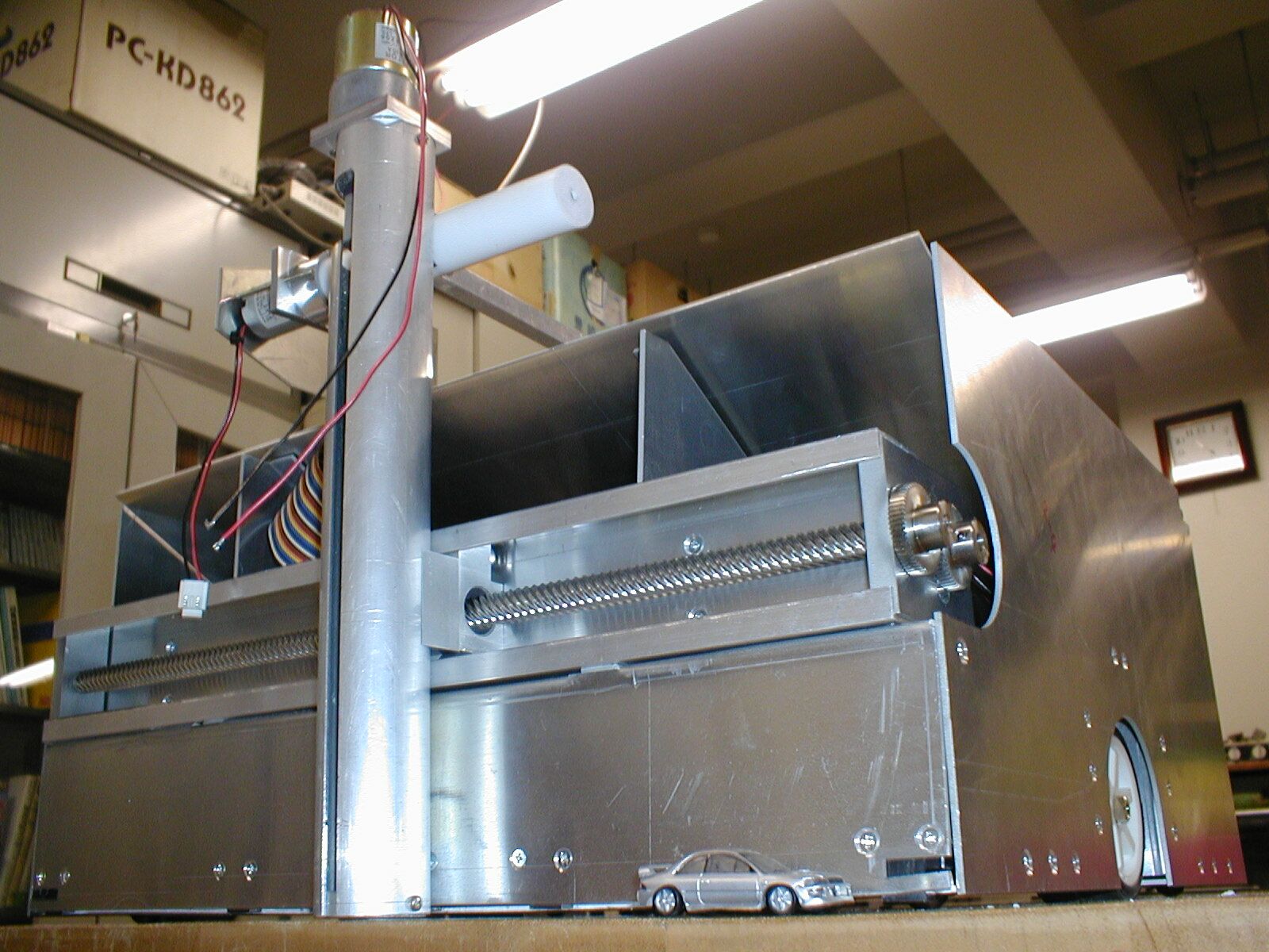 ロボット全幅を規定幅いっぱいに設計 ロボット前面にXYアームを装備. 物体獲得時の移動量を最小限に抑えることをめざした。