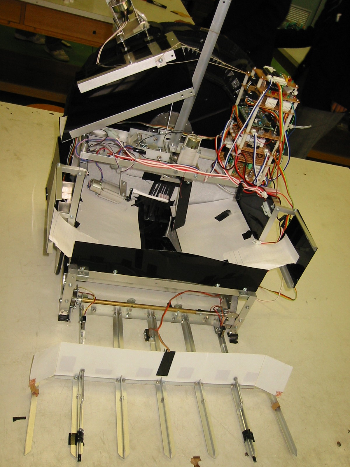 前方の牙でボールを拾い集め、後方の貯蔵部(城)でボールの識別を行い、ゴールにてそれぞれの色のみを排出する。