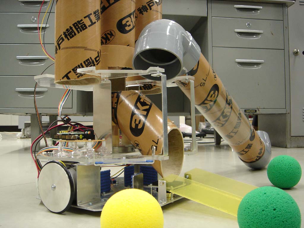 ファンで取り込み、機体上部で色を識別し、機体内部に分別して格納し、排出します。