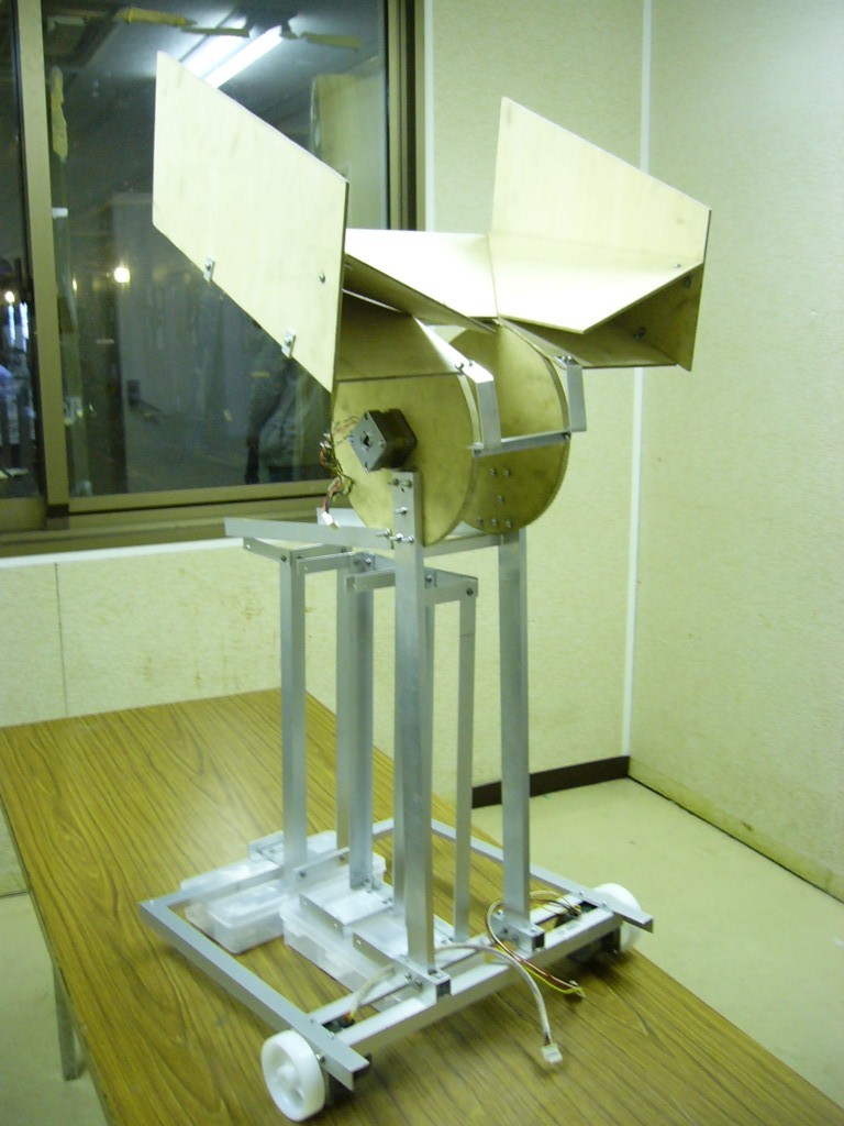 前面のボールをロボット上部まで巻き上げ、分別します。 分別されたボールはチューブにつめられて チューブごとゴールに飛び出し、得点します。