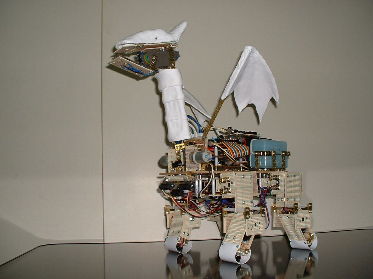脚、頭(首)、表示のそれぞれのモジュールはPICによって制御されます。 メイン(H8)はシリアルバスによって各PICと通信し、コマンド、データを 設定します。コマンド、データのフォーマットは独自のものを使用して います。