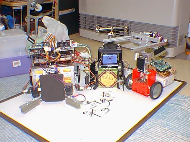 ハンドでとって分散で協調したい。無線シリアルを通してマップの共有をしたい。1台はモータ1つで物をつかんで持ち上げるという簡便な機構を持ち合わせる.