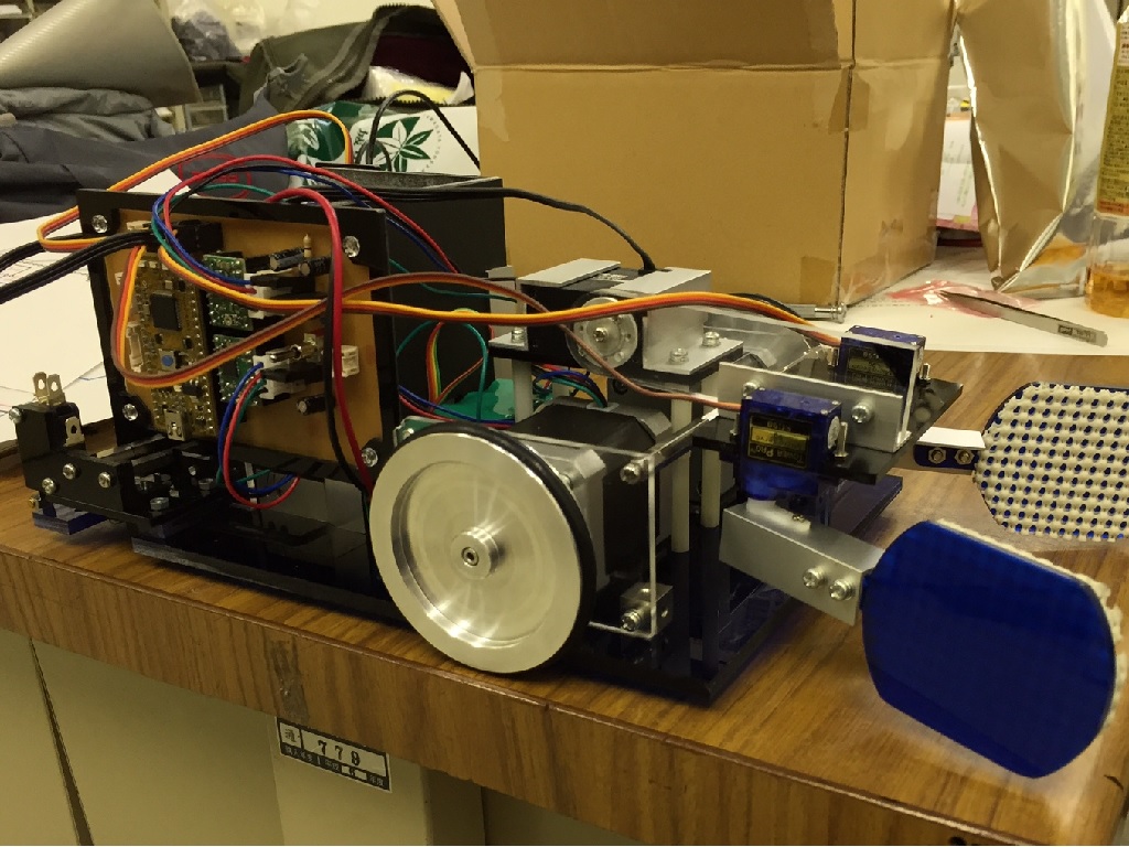 距離センサーを用いてボールの位置を検出し、赤外線カラーセンサーでボールの色を判断しています。ボールの回収は、1つを機体にある筒(箱)に入れ、さらに1つをアームで持ちながら運びます。